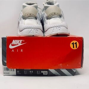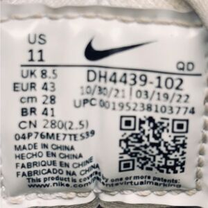 Stylish Nike athletic shoes. Features white and silver design. Perfect for sports and casual wear.