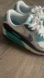Stylish Nike athletic shoes. Features white and teal design. Comfortable and durable. In good condition