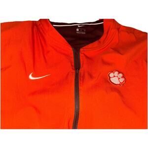The Nike Windbreaker Full Zip Clemson Tigers NCAA On-Field Lockdown Jacket s an officially licensed jacket featuring the iconic Clemson Tigers team color of orange. This item is used but is in really nice condition. Please let me know if you have any questions.