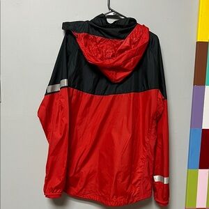 excellent condition. Nike jacket with a sleek design. Nike Swoosh Logo Windbreaker Jacket zipper pockets. detachable hoodie, zipper closure. elastic sleeves. two toned