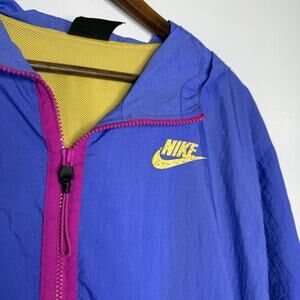 Nike Windbreaker Jacket Size 2X Colorblock Blue Yellow Pink Retro Sporty Hooded