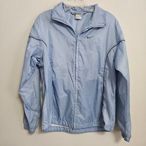 Nike Windbreaker Jacket Womens Med Blue Nylon Full Zip Vented Running Athletic