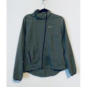Nike Windbreaker Jacket Womens Medium Gray Swoosh Asymmetrical Full Zip Running