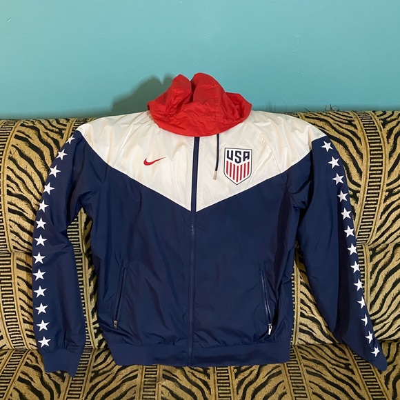 Nike Windrunner windbreaker jacket in white red and blue color way