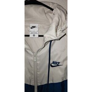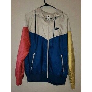 Elevate your activewear with the Nike Windrunner Hooded Windbreaker Jacket. Designed for versatility and performance, this mid-length men's jacket in size M boasts a vibrant, multicolor design that stands out in any setting. The breathable, polyester-built outer shell ensures durability and comfort during activities such as running, jogging, and cross-training.
