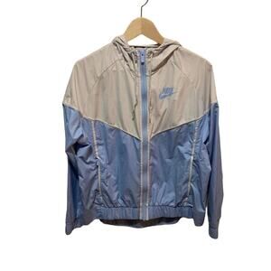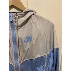 Nike Windrunner jacket windbreaker blue, gray, and white pullover wth hood