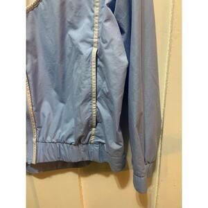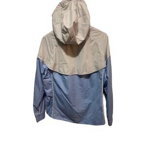 Nike Windrunner jacket windbreaker blue, gray, and white pullover wth hood size large in EUC. Great extra layer for spring!
