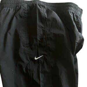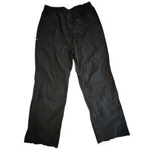 The Nike Windrunner High-Waisted Woven Open-Hem Pants in Women's Size M are designed for comfort and style in activewear settings. Made of polyester fabric, these track pants feature an elastic waist for a secure fit and a pull-on closure. The pants have a straight leg style and a 29.5-inch inseam. New Without Tags.