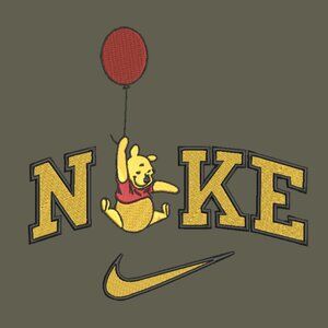 Nike Winnie The Pooh Balloon Gold Text Embroidered Crewneck Sweatshirt Cozy Adult Unisex Pullover Long Sleeve Top Cute Cartoon Bear Animal Lover Gift