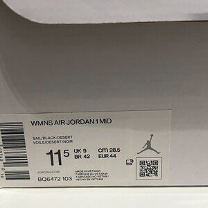 Nike Wmn's Sz 11.5 Jordan 1 Mid Sail Black Desert BQ6472 103 - New