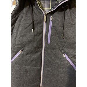 Nike Womans Golf Jacket Size M Black Reversible Sleeveless Sport Hat Pockets Length 24 Width 19 Arm Hole 9 Purple Accent See Photos