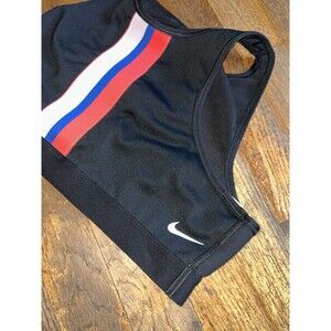 The Nike Women's Gym Elastic Sports Bra in black is a stylish and functional sport bra designed for women. It is made by the renowned brand Nike and comes in size small, with a regular fit suitable for everyday wear or intense sports activities. The elastic material provides a comfortable and supportive fit, while the sport bra style adds a touch of athletic flair to the outfit. Perfect for women who enjoy staying active and looking stylish while doing so.