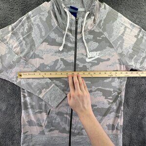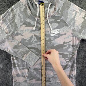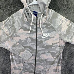 Nike Women Jacket Hoodie Camo Gray Pink Large Full Zip Lightweight W/ Pockets
