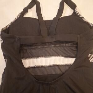 The Nike Women's Standard Mesh Solid Edge V-Back One Piece Swimsuit is a stylish and comfortable swimwear option for women. Featuring an athletic top style with a striped pattern, this one-piece suit has a racerback strap and mesh inserts for added breathability. Made from a blend of polyamide and elastane, this black swimsuit with white accents is perfect for a day at the beach, school, or for sports activities in the water. With a full coverage bottom style in black and sheer mesh, this Nike swimsuit is a versatile choice for any water-based adventure.