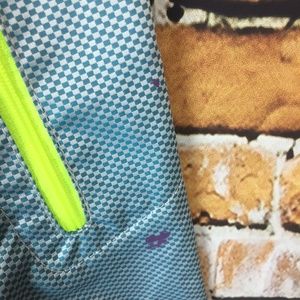Windbreaker, 100% Polyester, full front zip, green and white check with yellow trim,