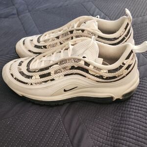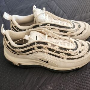 Elevate your look with the Nike Air Max 97. Sleek black and white design. Perfect for everyday wear.