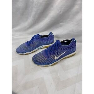 Keywords: Nike, Air Zoom, Flyknit, women's sneakers, athletic shoes, breathable, lightweight, durable, blue sneakers, lace-up, pre-owned, size 9.5, gym shoes, performance sneakers, stylish sneakers.