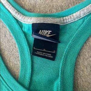 Vibrant aqua tank top by Nike. Features iconic swoosh design. Ideal for active or casual wear.