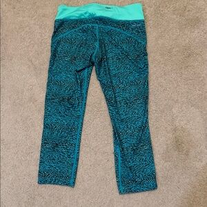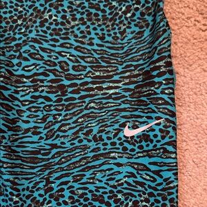 Stylish Nike leggings in an aqua and black pattern. Perfect for a workout or casual outing.