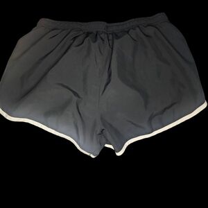 Sleek black design with white trim. Ideal for workouts or running. Has liner inside. Size Medium