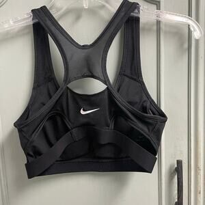 Excellent condition womens size Small black mesh racerback style sports bra with large white logo on the chest from Nike