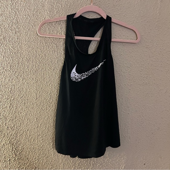 Sleek black tank with iconic white Nike logo. Ideal for gym or casual outings.