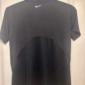 Stay comfortable and stylish with the Nike Women's Black Running Top. Perfect for workouts or casual wear, this top features a sleek black design with the iconic Nike logo.