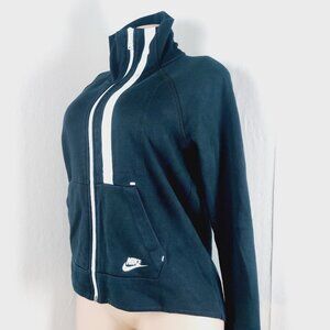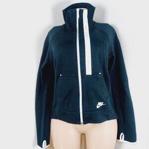 Nike Women's Black White Tech Fleece Mock Neck Full Zip Classic Moto Jacket Sz L