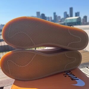 In a light pink hue, this sneaker features a vintage-looking leather look. Here, the retro Nike logo appears on the tongue, the old school 'NIKE' typography on the heel and the usual Swoosh logo appears on the sides. The look is finished with a flat gum rubber sole for comfort.