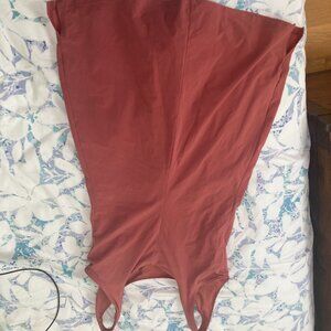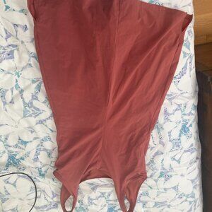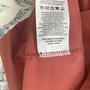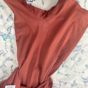 Exercise mini dress with built in suit similar to Outdoor Voices. Sleeveless with square neck cut in Canyon Rust color. Stretchy and super comfortable. Worn but still in great condition with some marks on interior suit, not visible when worn. Retailed for $100.