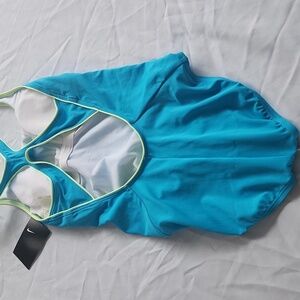 Dive into style with the Nike Women's Blue One-Piece Swimsuit. Perfect for swimming enthusiasts, this vibrant blue swimsuit offers comfort and durability. Ideal for both training and leisure. New With Tags size Medium