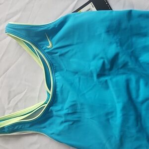 Dive into style with the Nike Women's Blue One-Piece Swimsuit. Perfect for swimming enthusiasts, this vibrant blue swimsuit offers comfort and durability. Ideal for both training and leisure. New With Tags size Medium