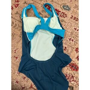 Nike Women's Blue Racing Suit color block One-Piece Swimsuit Size 14