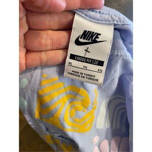 Nike Womens Blue Seashells Print Loose Fit Short Sleeve Cropped Top Size XL