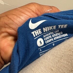 NWT NIKE blue tee featuring a striking red Nike logo.