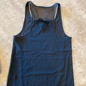 Stylish Nike heather black and black tank top with mesh sides and back. The back has a cute tie that you can make a bow or cinch it together.