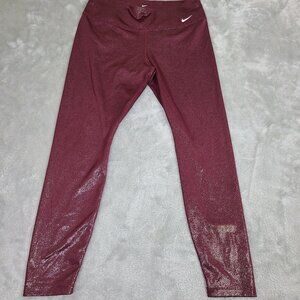 Nike Women's Burgundy Mid Rise 7/8 Tight Fit Leggings Size Large Dri Fit