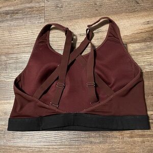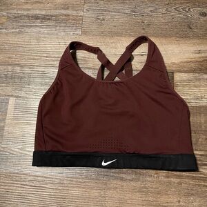 Experience comfort and support with the Nike Women's Burgundy Sports Bra. Perfect for workouts, this stylish bra features a sleek design and durable fabric.
