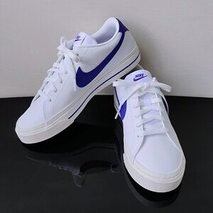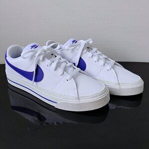 Nike Women's Court Legacy Next Nature Lightweight Sneaker in Amazing White / Deep Night-Sail ~ Honoring a history rooted in tennis culture, the Nike Court Legacy Next Nature brings you a time-tested staple in a design that's made from at least 20% recycled materials by weight. Its synthetic leather and retro design let you blend sport and fashion. Do good by looking good :)