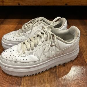 Nike Womens Court Vision Low Triple White Lace Up Shoes Sneakers Size 7