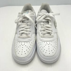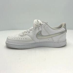 Nike Womens Court Vision Low White Iridescent Shiny Swoosh Sneakers Size 9.5