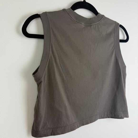 Nike Womens Crewneck 100% Cotton Logo Athletic Cropped Stone Grey Tank Top Small