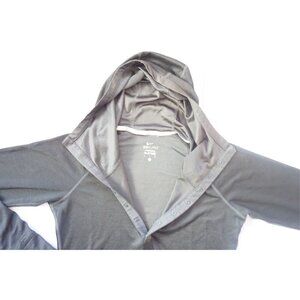 • Style: Long-sleeve hoodie with a partial snap-front closure