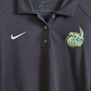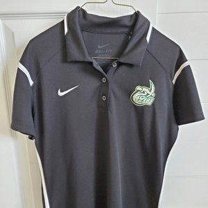 A black Nike Women's Dri-Fit polo, size Medium. 100% polyester Machine Wash Cold
