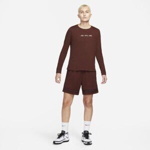 Nike Womens Dri-Fit Fly Crossover Shorts CK6599-273 in bronze eclipse/black are designed for ultimate comfort and style. Perfect for sports or casual wear, size XS.