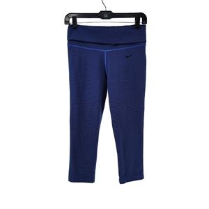 Nike Women's Dri-Fit High Rise Blue And Black Striped Crop Leggings - S