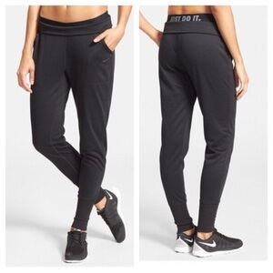 ❤️Lovely Nike Women's Dri-Fit Obsessed Training Pants Jogger Black Knit Stretch Pants