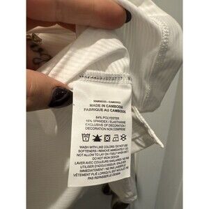 The Nike Women's Dri-fit 1/4 Zip Long Sleeve Top in White Medium M features a collared neckline with a zipper closure, perfect for travel, casual wear, or work. Made from a polyester blend material with a rayon fabric type, this pullover top has classic/fitted sleeves and is accented with beads and a zipper pull. The top is designed for a regular fit and is ideal for various seasons including winter, summer, fall, and spring, making it a versatile addition to your wardrobe. Perfect for sports enthusiasts, this top embodies a sporty theme while also offering comfort and style.