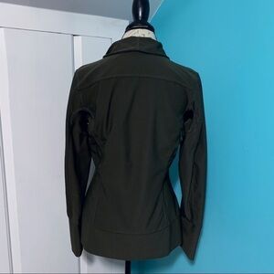 Nike Ladies Fit Dry Full Zip Jacket offers the adjustable coverage of a full dual zip silhouette with the sweat wicking power of Nike Dry fabric do you can stay dry and comfortable on and off the course. Full zip provides easy on and off. Front slit pockets. Thick banded cuffs and waist band. 88% Polyester. 12% Spandex. Machine wash, line dry. Measures approximately: 26” shoulder to hem, 26” shoulder to cuff, 20 1/2” armpit to armpit. Excellent condition.