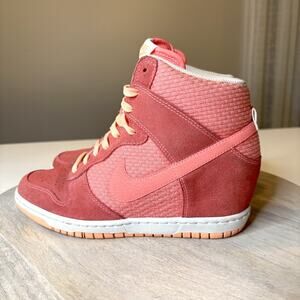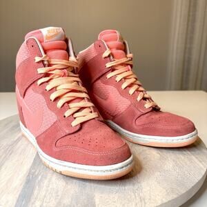 Up for sale I have this pair of Nike Women’s Dunk Sky Hi Wedge Sneakers. Color is Lava Glow / Sunset. Style code 644877-602. US size 8.5 . These shoes are in great overall condition. Take a look at the photos and feel free to message me with any questions.